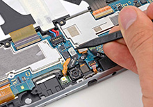 Инженер сервисного центра осуществляет ремонт: заменяет испорченную запчасть работоспособной фирменной комплектующей